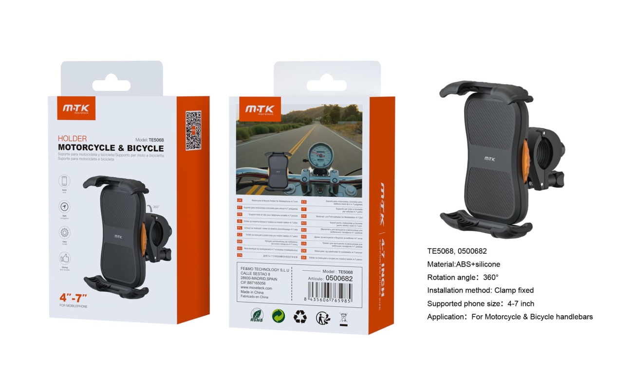 TE5068 NE Soporte Universal de movil para Bicicleta y Moto , 360¡ã Rotacion, 4-7 Pulgadas , Negro Iniciar sesión para ver precios