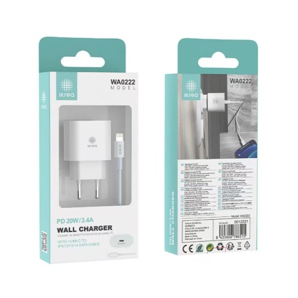 IKREA WA0222 CARGADOR PD USB-C CON CABLE USB-C TO LIGHTNING 20W 3.4A BLANCO