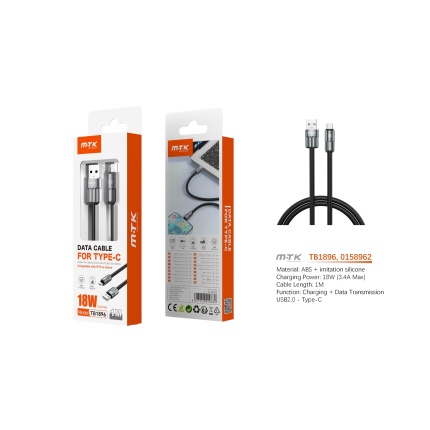 TB1896 NE Cable de Datos Caldris para Type-C 18W/3.4A/1M, Negro