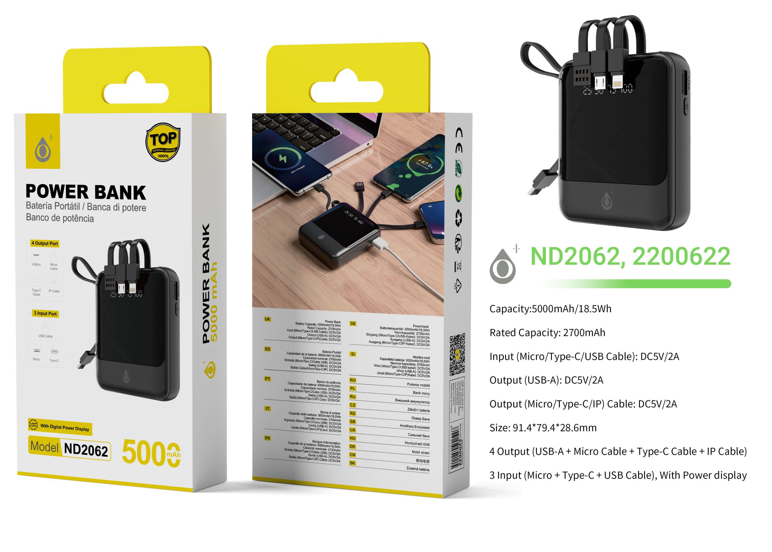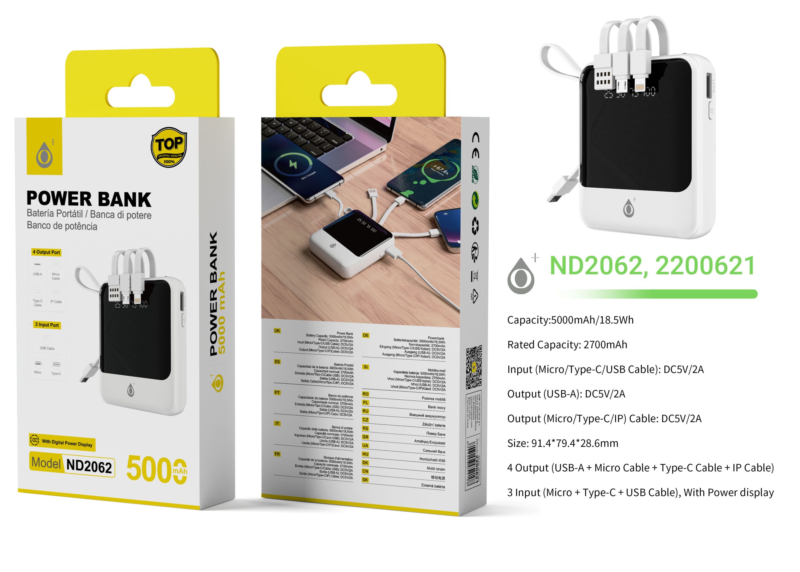 ND2062 BL Power Bank con cable e indicador de bateria 5000mAh/18.5W