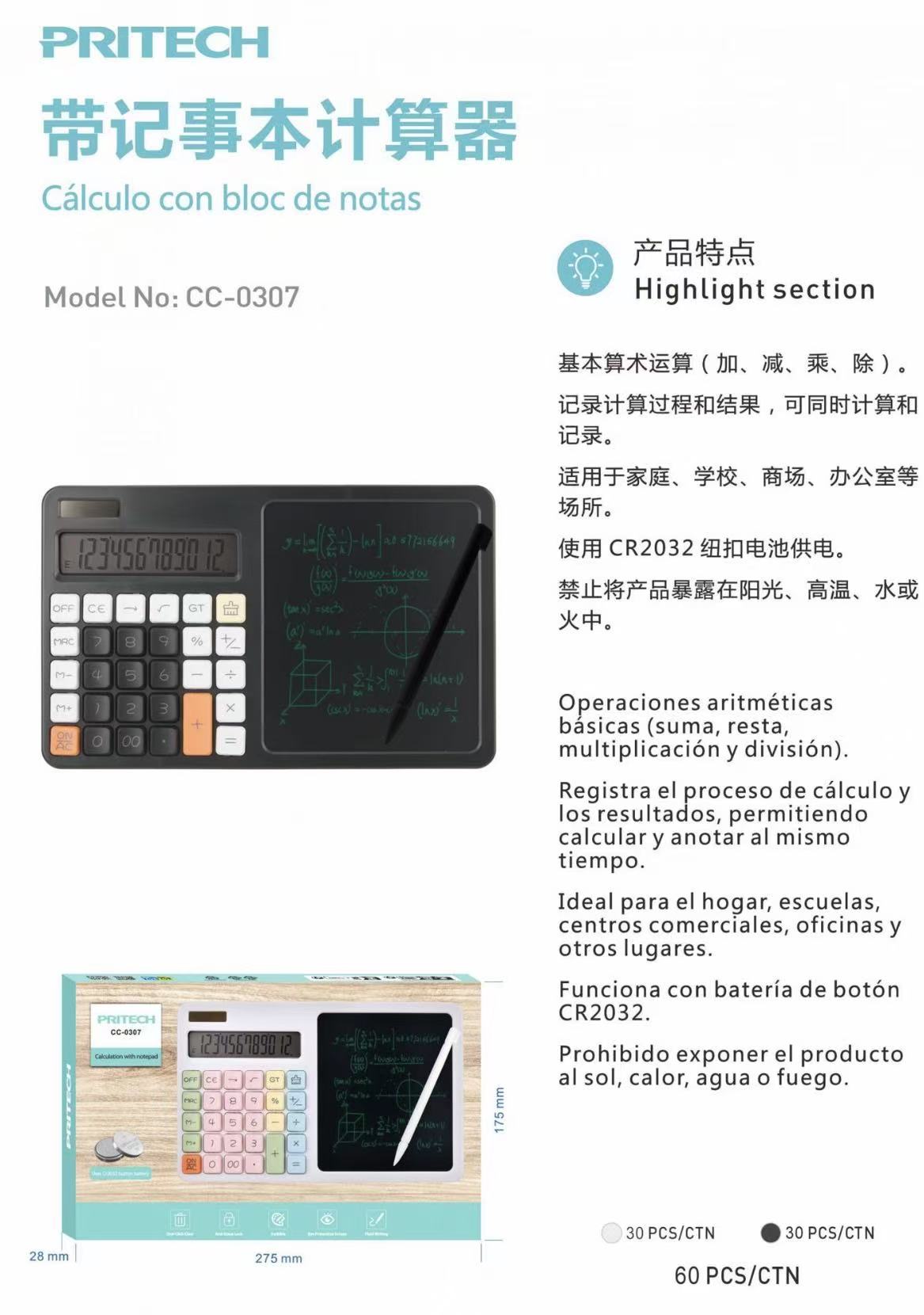 CC-0307 Calculadora con Tableta de Escritura, Calculadora Básica Portátil