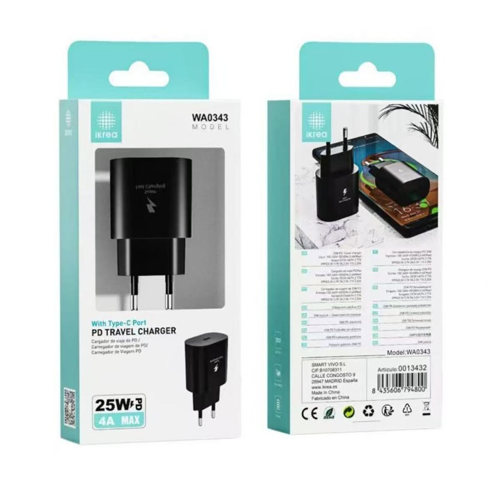 IKREA WA0343 CARGADOR PD CON PUERTO TYPE-C 25W 4A MAX BLANCO Y NEGRO