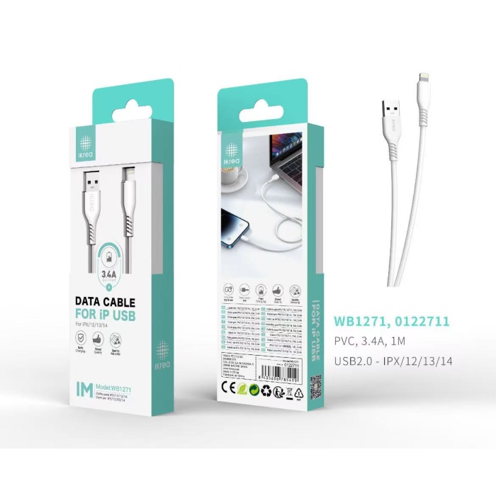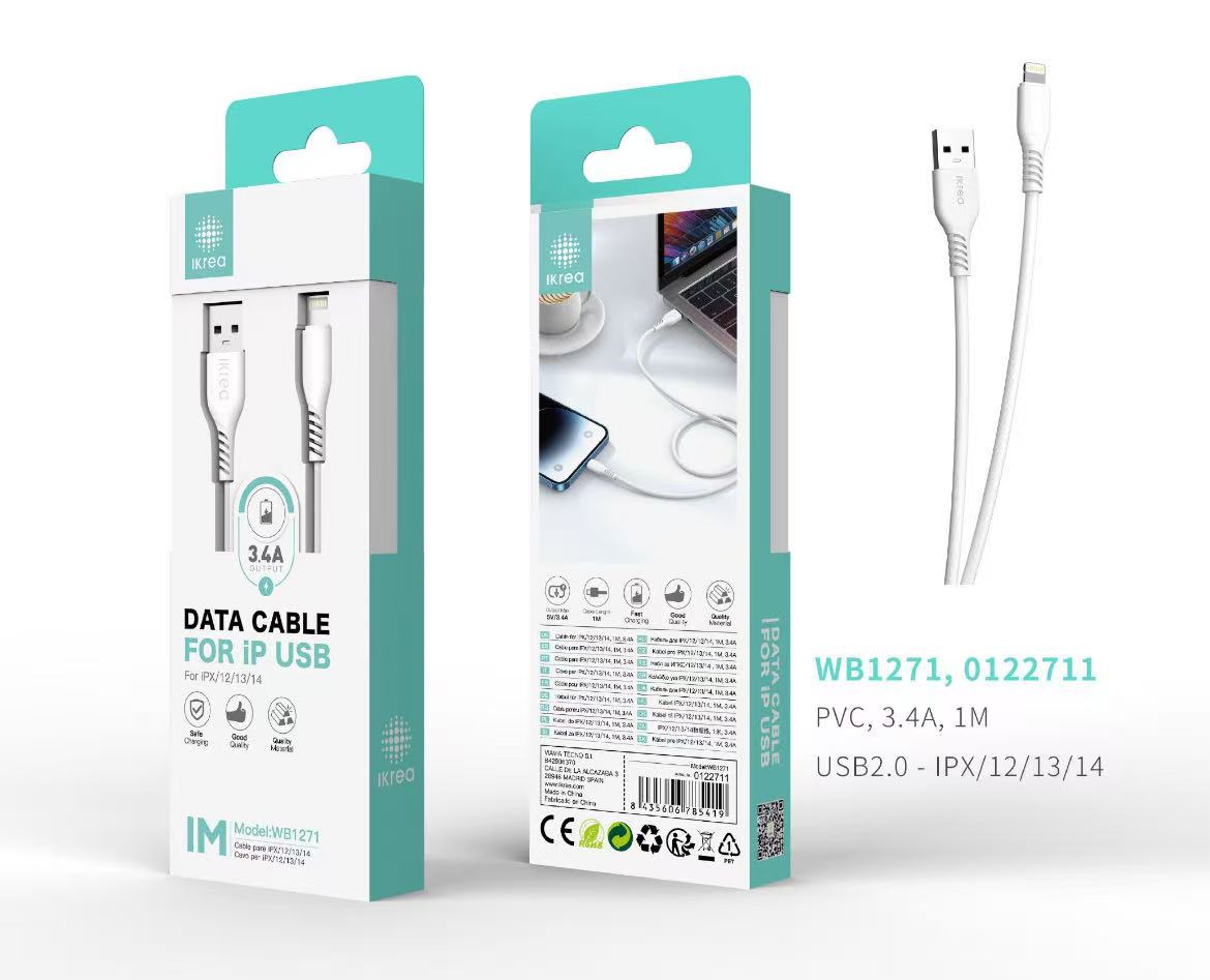 IKREA WB1271 CABLE DE DATOS PVC LIGHTNING 3.4A 1M BLANCO