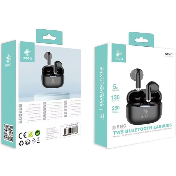 IKREA WC9477 AURICULARES INALÁMBRICOS ENC TWS BLUETOOTH V6.0 NEGRO