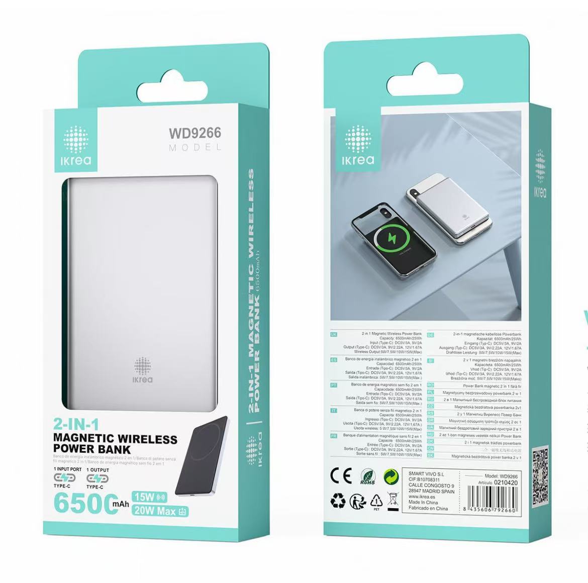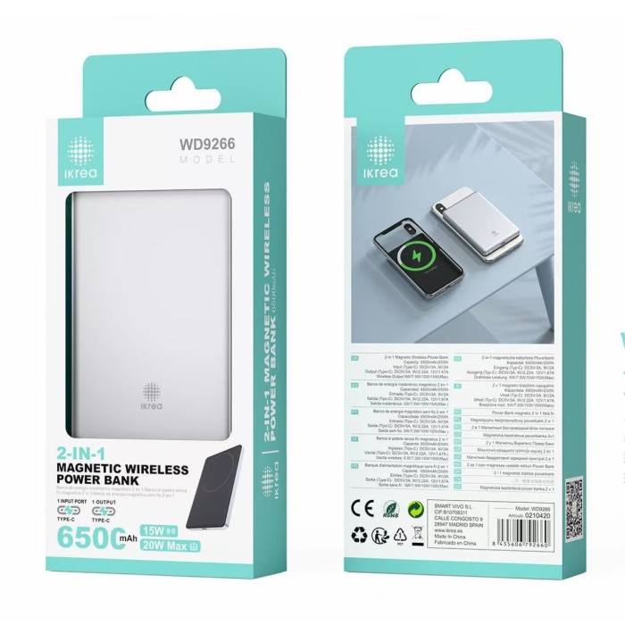 IKREA WD9266 POWER BANK MAGNÉTICO 2 EN 1 6500MAH PLATA