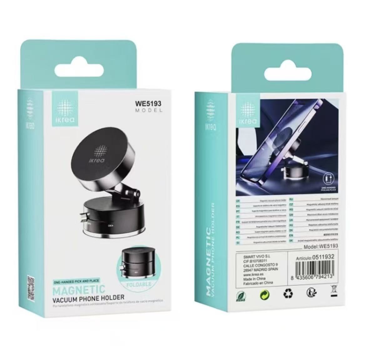 IKREA WE5193 SOPORTE UNIVERSAL MAGNÉTICO CON VENTOSA DE VACÍO PARA COCHE NEGRO