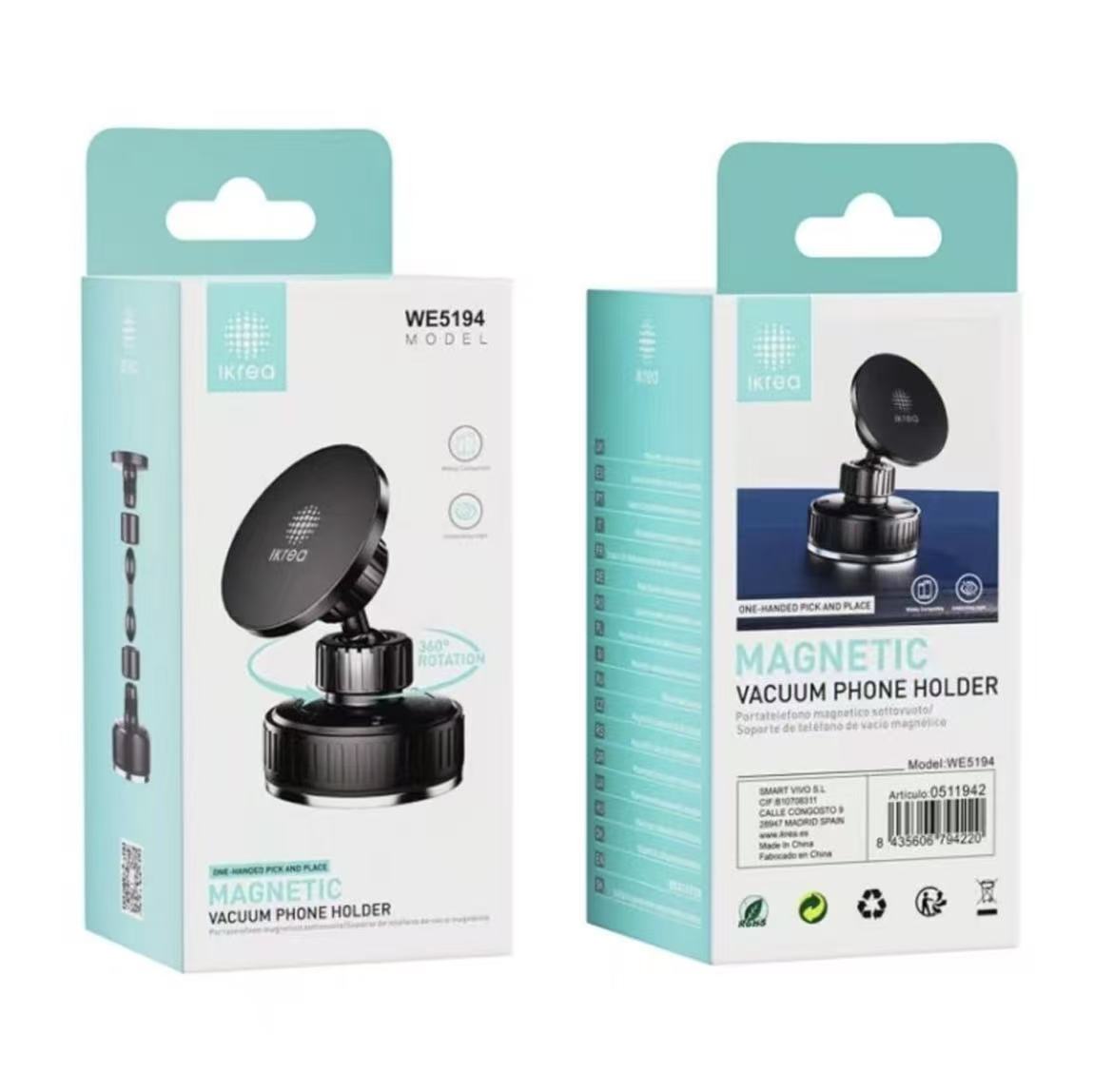 IKREA WE5194 SOPORTE UNIVERSAL MAGNÉTICO CON VENTOSA DE VACÍO PARA COCHE 360º ROTACIÓN NEGRO