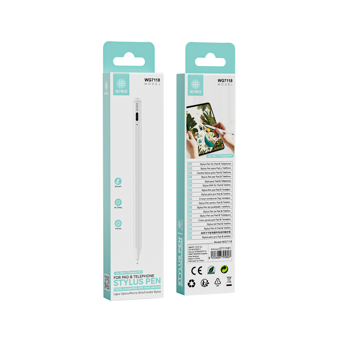 IKREA WG7118 LÁPIZ ÓPTICO PARA TABLET Y MÓVIL ALTA COMPATIBILIDAD INTERFAZ TYPE-C BLANCO
