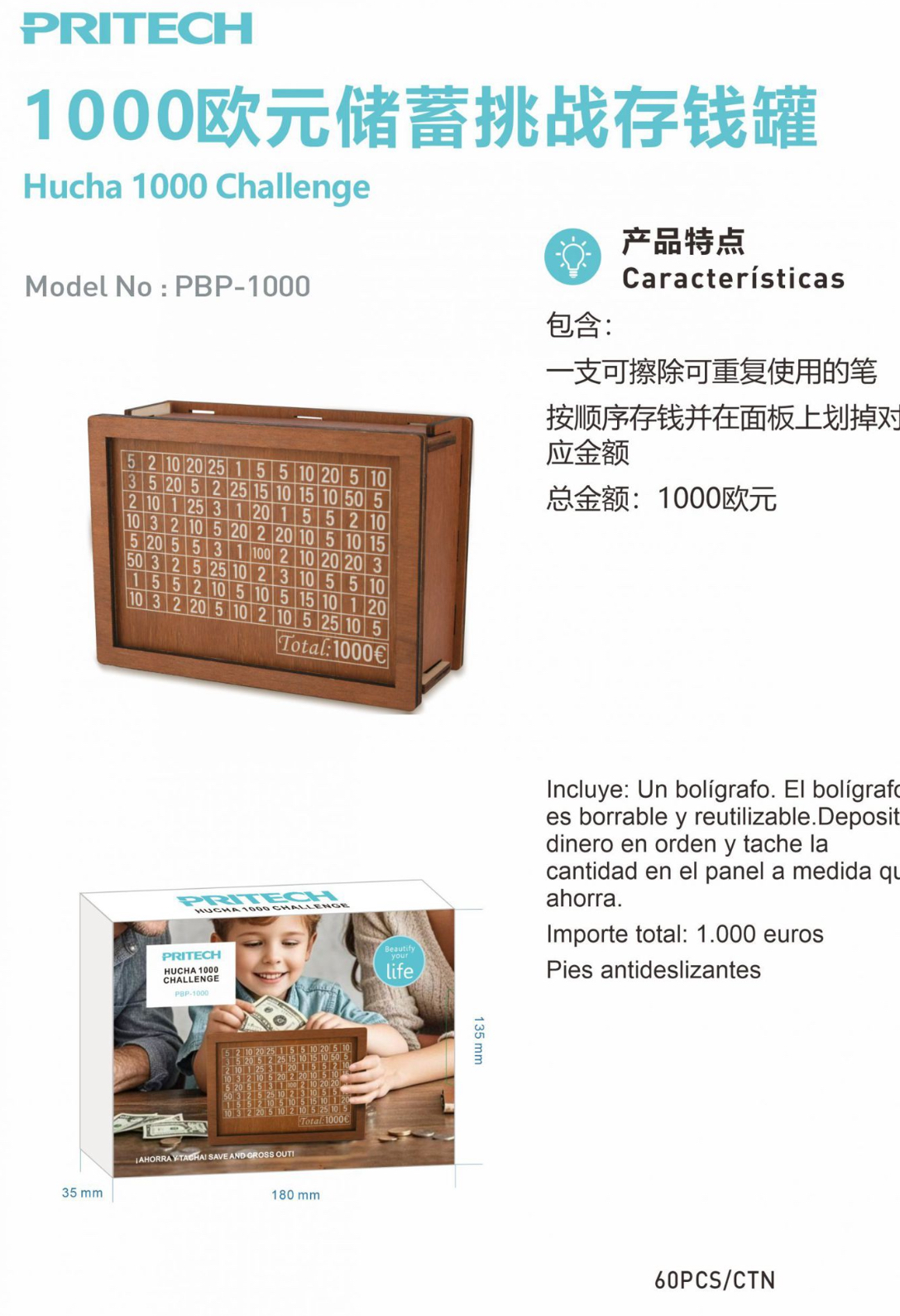 hucha reutilizable con objetivo de ahorro y números, caja de almacenamiento para ayudar a los niños a ahorrar (10000€)
