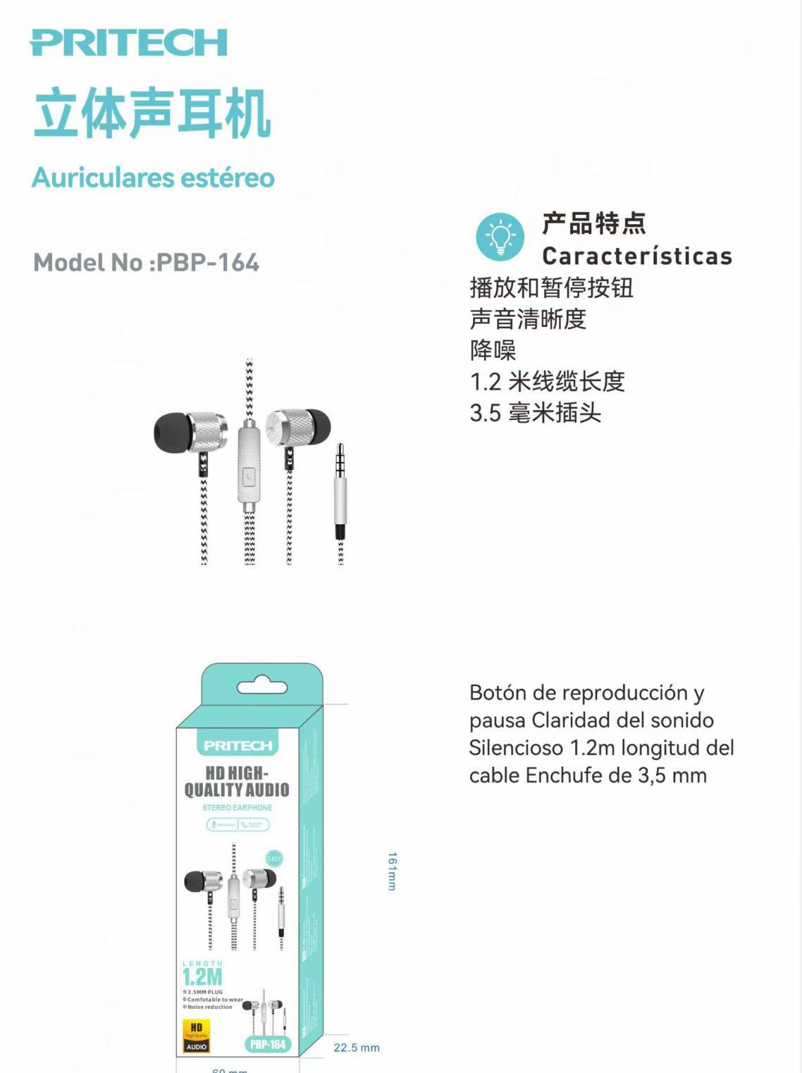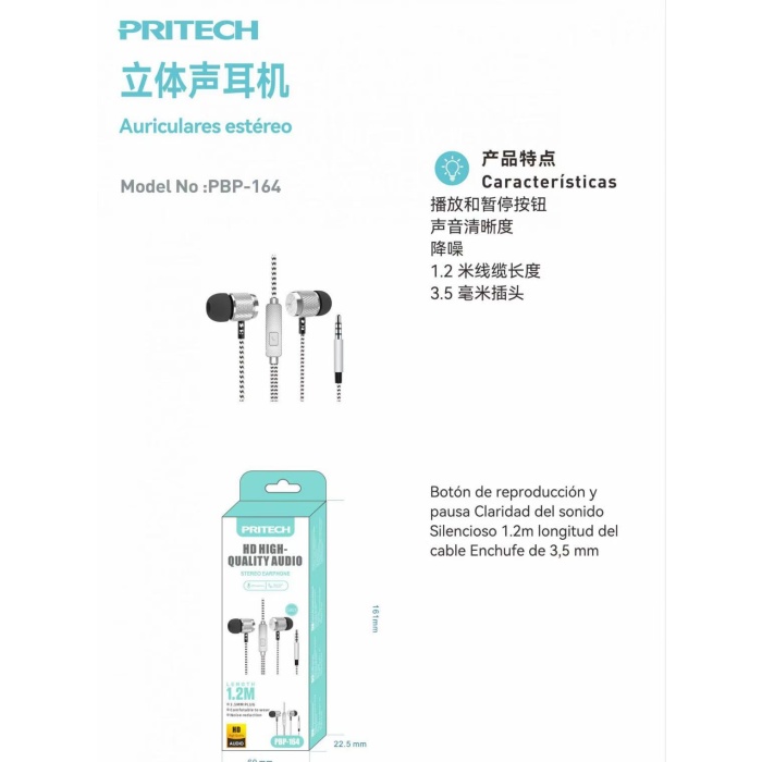 PBP-164 Auriculares con Cable, Auriculares con Microfono, Auriculare de Reducción de Ruido de 3,5 mm