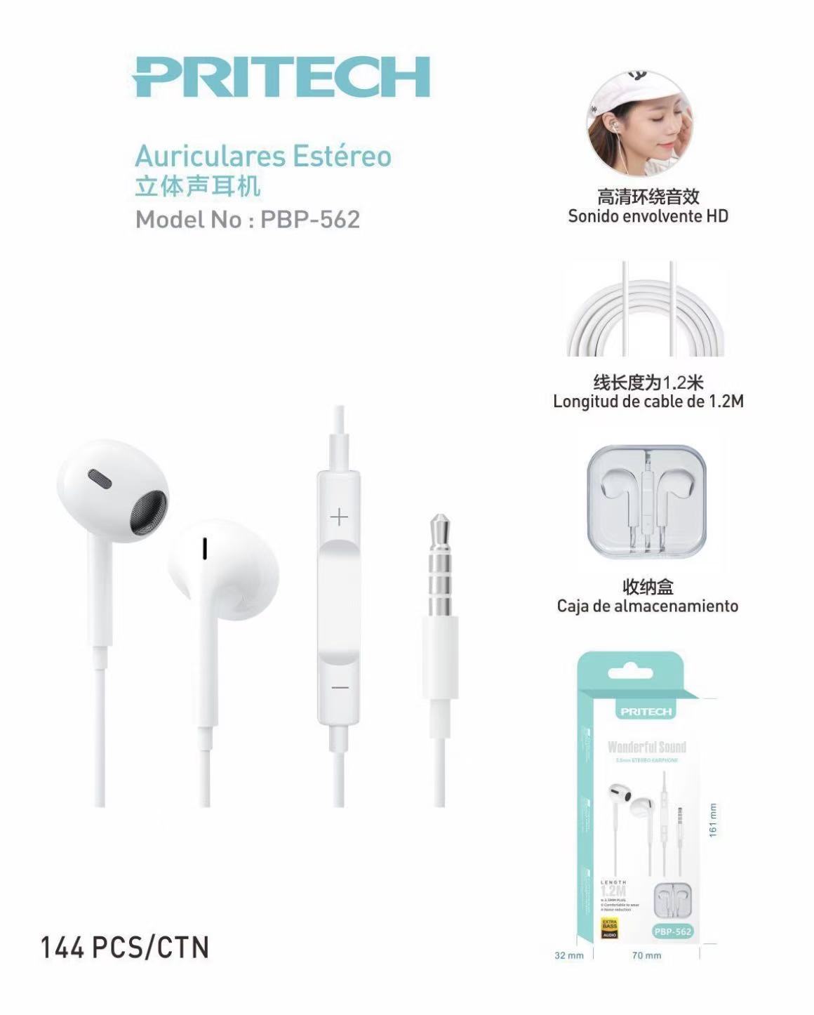 PBP-562 Auriculares con Cable con Micrófono y Control de Reproducción, Adecuados para Teléfonos Móviles, Tabletas, MP3 y Otros Dispositivos de Audio de 3,5 mm