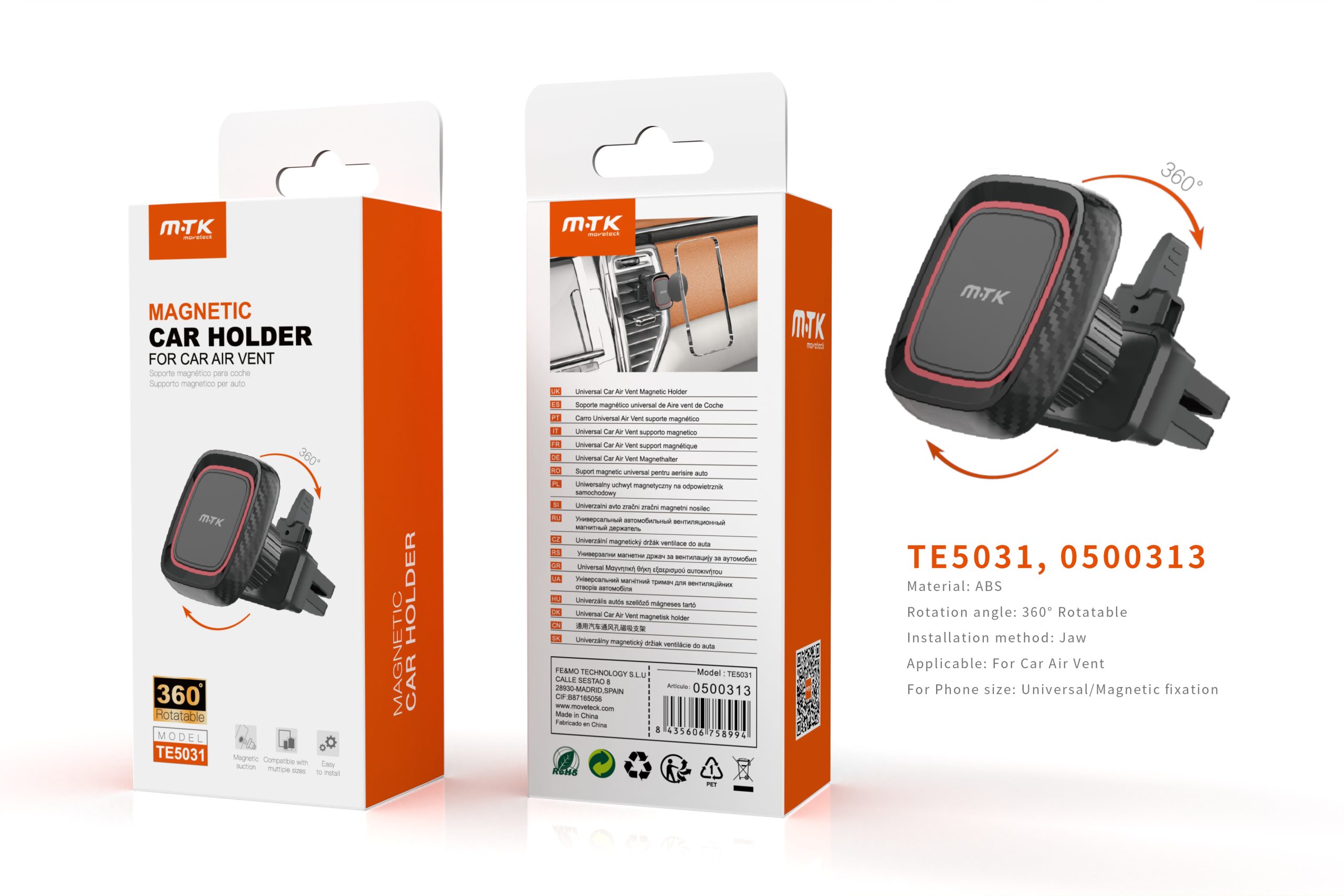 TE5031 NE Soporte Universal de Movil Magnetico para Airvent de coche, ajustable 360°grado, Negro